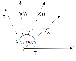 (ix) 因此,$\overline{PX}$、$\overline{PW}$ 和 $\overline{PU}$ 将 $153^o$ 角的 $\overline{PS}$ 分成了四等份。