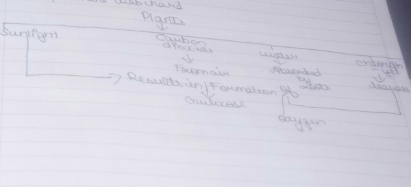 二氧化碳 + 水 + 阳光 -------> 葡萄糖 + 氧气 (碳水化合物)
