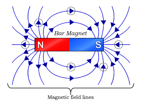 (b) 地球的磁场类似于一个条形磁铁的磁场,其南极位于北半球。