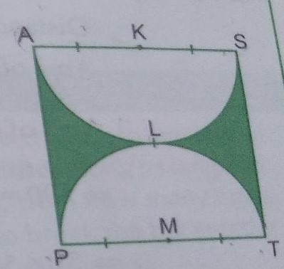 阴影区域的面积=正方形PAST的面积 - (半圆PLT和ALS的面积之和)