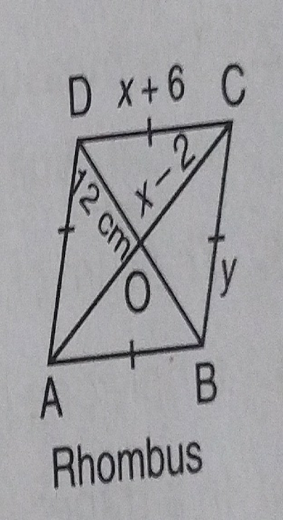 $OD=12\ cm,\ OC=( x-2)$,且 $CD=( x+6)$