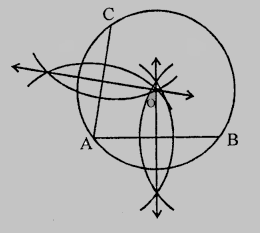 3. 作 $AB$ 和 $AC$ 的垂直平分线,它们相交于 $O$。