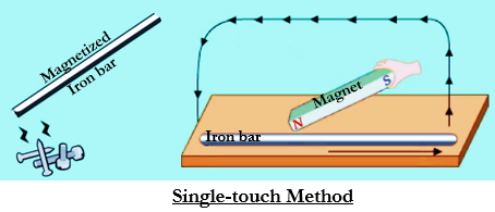 为了磁化一块铁,需要反复用永久磁铁(条形磁铁)的同一极沿同一方向摩擦或敲打铁块,这个过程被称为单极法或单向摩擦法。