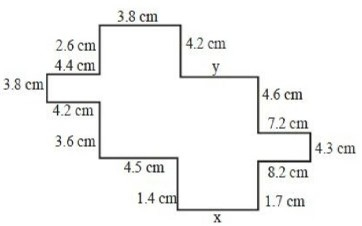 如果给定图形的周长为 \( 68.3 \mathrm{~cm}, \) 则 \( x+y \) 的和为