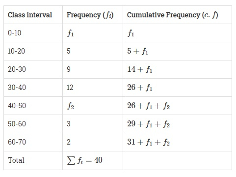 缺失的频数 $f_1$ 和 $f_2$ 分别为 3 和 6。