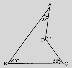 $x=35^{\circ}+45^{\circ}+50^{\circ}$
