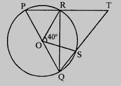 如图所示,$O$是圆心,$PQ$是直径。如果$\angle ROS = 40^o$,求$\angle RTS$。