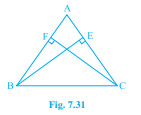 △ABC是等腰三角形,其中BE和CF分别是等边AC和AB上的高(见图7.31)。证明这两条高相等。