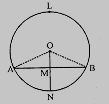 设一个圆心为$O$,弦为$AB$,$M$为$AB$的中点,连接$OM$并延长交劣弧$AB$于$N$。