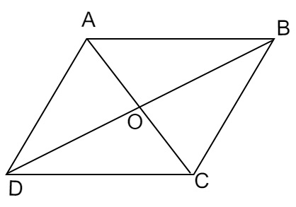 设在平行四边形 $ABCD$ 中,对角线 $AC$ 和 $BD$ 相交于 $O$。
