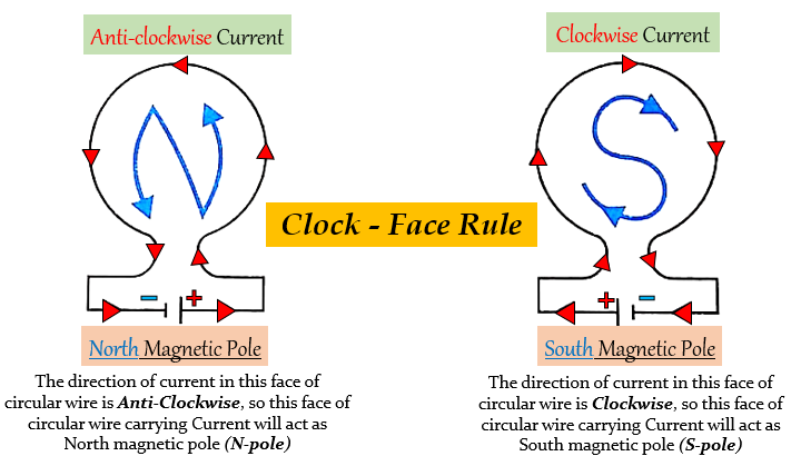 并且,圆形导线的 背面 的电流流动将为 顺时针 方向,并充当 南极。