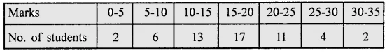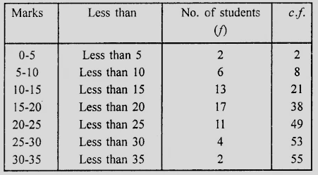 - 以下是 $40$ 名学生在一项测试中取得的分数的频数分布表。(a) 组距是多少?(b) 频数为 $6$ 的组的区间下限是多少?(c) $20-30$ 组的组中值是多少?