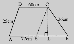 梯形两平行边长分别为60厘米和77厘米,其余两边长分别为25厘米和26厘米。