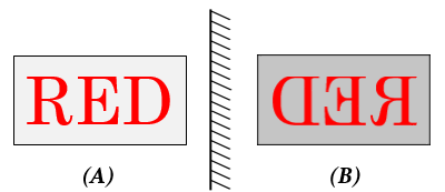 示例 - 在图 A 中所示,当我们拿着一个写有单词 RED 的标牌放在平面镜前时,单词 RED 的像会发生左右反转,看起来像图 B 中的像。