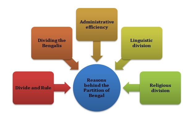 克尔宗为这次划分提出的借口是行政效率。由于缺乏适当的沟通和孤立,东孟加拉被忽视了。奥里萨邦和比哈尔邦应该被分割,孟加拉和阿萨姆邦的15个东部地区应该合并,因此形成了一个拥有3100万人口的新领土。