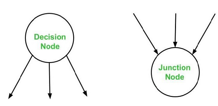 有多个箭头离开的节点称为决策节点。