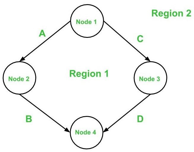边和节点所包围的区域称为区域(图外部的区域也计为一个区域)。