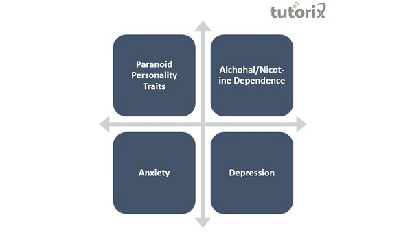 主要的合并症之一是酒精/尼古丁依赖症。这可能是因为当一个人不知道或失去与现实的联系时,他们可能会转向酒精或尼古丁来应对他们的处境。其他报告的合并症包括抑郁症、焦虑症和偏执型人格特质。这可能是因为总是处于紧张状态会使任何人感到焦虑和偏执,因为他们总是寻找一些线索或迹象。