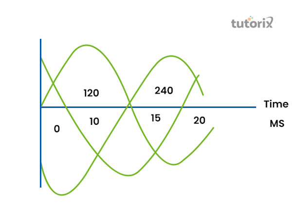 相位差与相同频率相关,可以是负 180 度或正 180 度。在这种情况下,相位将彼此相对放置。