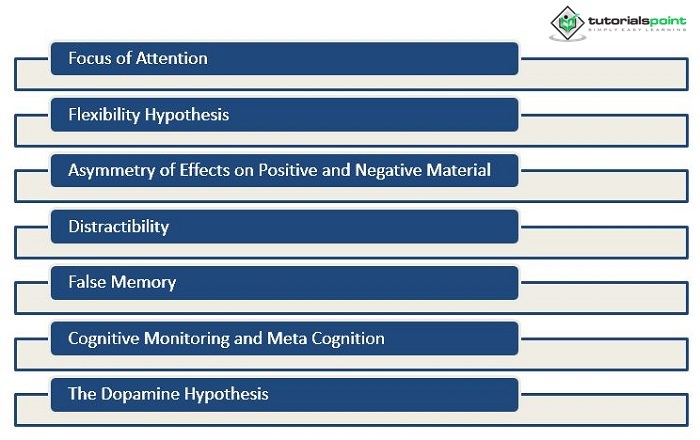 这些发现和对监控和元认知的建议也与积极情绪对认知过程影响的多巴胺假说一致。这个概念可以帮助理解积极情绪对思维过程的促进作用。有人声称,良好的情绪与大脑中多巴胺的产生有关,多巴胺刺激大脑中已知与思维、工作记忆、注意力灵活性和其他相关认知功能相关的区域。
