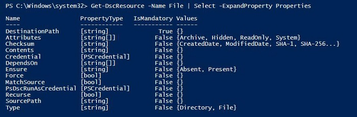 Get-DscResource -Name File | Select -ExpandProperty Properties