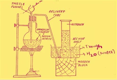 $$\mathrm{NH_{4}NO_{2}\:\rightarrow\:N_{2}\uparrow\:+\:2H_{2}O}$$
