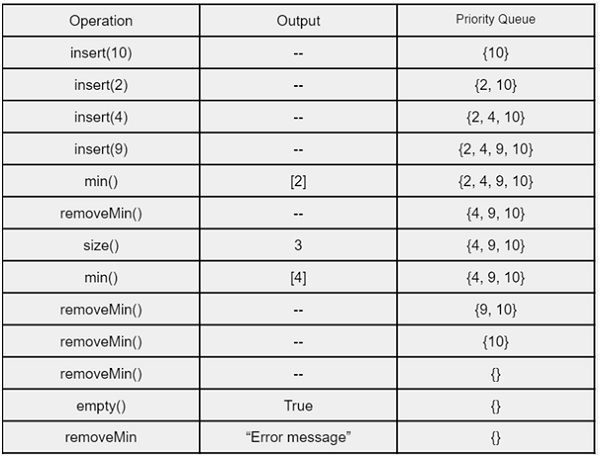 Size() − 用于计算优先级队列的大小,即返回队列中的元素数量。