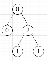 root = TreeNode(0) root.left = TreeNode(0) root.right = TreeNode(2) root.right.left = TreeNode(1) root.right.right = TreeNode(1)