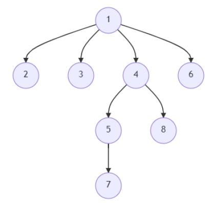 edges = [(1, 2),(1, 3),(1, 4),(4, 5),(5,7),(1,6),(4,8)]