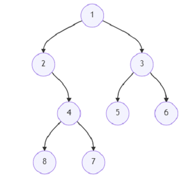 root = TreeNode(1) root.left = TreeNode(2) root.right = TreeNode(3) root.left.right = TreeNode(4) root.left.right.left = TreeNode(8) root.left.right.right = TreeNode(7) root.right.left = TreeNode(5) root.right.right = TreeNode(6) d = 4