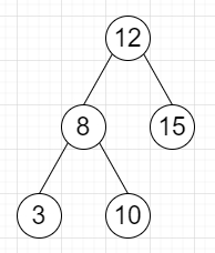 root = TreeNode(12) root.left = TreeNode(8) root.right = TreeNode(15) root.left.left = TreeNode(3) root.left.right = TreeNode(10) 7,13