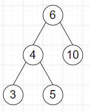 root = TreeNode(6) root.left = TreeNode(4) root.right = TreeNode(10) root.left.left = TreeNode(3) root.left.right = TreeNode(5) 4