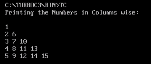 i stands for rows and j stands for columns. 5 stands for making pattern for 5 Rows and Columns Loop for each Row (i) K is initialized to i Loop for each Column (j) Do the Pattern for the current Column (j) Display the Value of K Reinitialize the Value of K = k + 5 - j