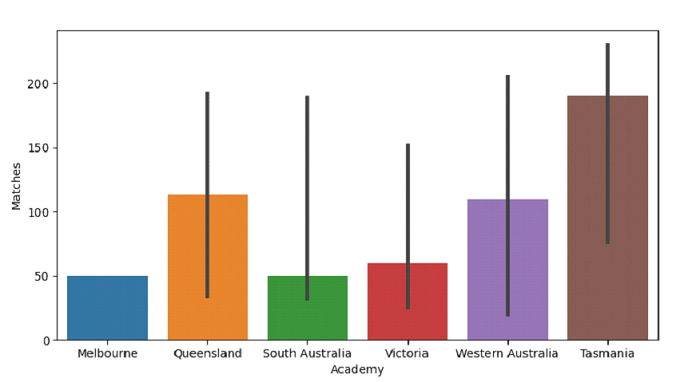 sb.barplot(x = dataFrame["Academy"], y = dataFrame["Matches"], estimator = median)