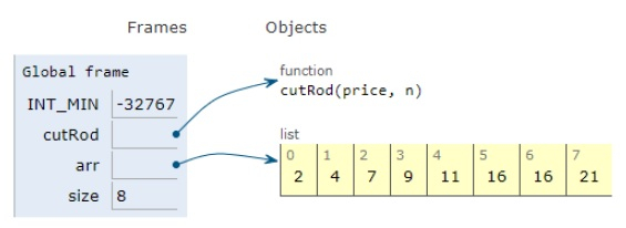def cutRod(price, n):