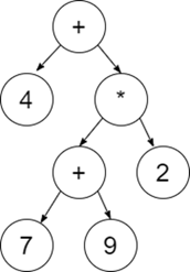 例如:4 + ((7 + 9) * 2) 将具有如下所示的表达式树 -