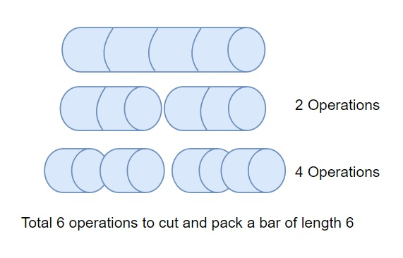 假设我们需要运输几根不同尺寸的金属棒。但运输容器长度有限,只能容纳长度为1的金属棒。我们有n根金属棒,它们的长度已知。为了将所有金属棒放入容器,我们必须切割并分割所有金属棒,使其长度为单位长度。然后,我们将所有金属棒放入容器,这算作一次操作。我们需要找到必须对金属棒执行的操作次数。