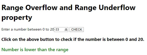 范围下溢 − 如果元素值小于 min 属性中指定的元素值,则将其设置为true。