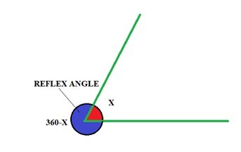反射角是两条直线之间形成的角度,它是主角的反射。反射角的旋转角度可以在 180° 到 360° 之间。一个角与其反射角一起构成一个周角。我们知道周角是 360°,对于一个角 x,相应的反射角将是 360-x。