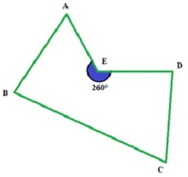 如多边形图所示,其中一个角为 260°,大于 180°。