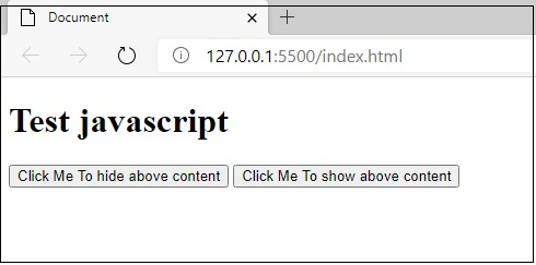 当你单击按钮“点击我隐藏上述内容”时,你会得到以下输出。