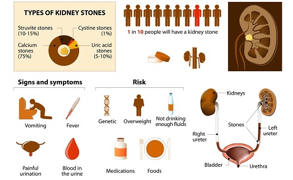 肾结石可能是由饮食、肥胖以及一些其他补充剂和药物引起的。肾结石是一种可治愈的疾病;但是,它会导致严重的疼痛和不适。根据结石的大小,患者会出现不同的症状。但是,我们始终需要医生的帮助来去除它,并减少肾结石可能造成的各种风险和危害。