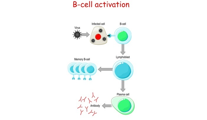 B细胞产生这些抗体需要T细胞、巨噬细胞、树突状细胞等的相互作用,这有助于B细胞的激活。激活后,B细胞转化为浆细胞,实际上参与抗体的产生。