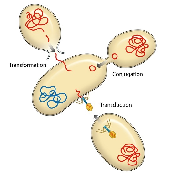 细菌转化是一种水平基因转移技术,允许某些细菌从其环境中吸收外源遗传物质(裸露DNA)。