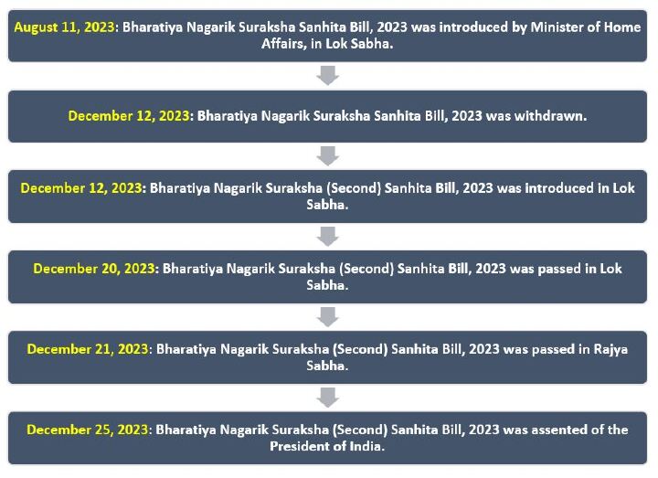《印度公民安全法》(简称 BNSS)现在是实施实体刑法(即《印度司法法》)的主要程序法。议会已对现有的刑事程序法进行了彻底的修订和整合。顾名思义,“公民安全法”更侧重于保护人民。另一方面,它也赋予警察一定的权力,扩大了逮捕的理由,并允许在更广泛的案件中无证逮捕。