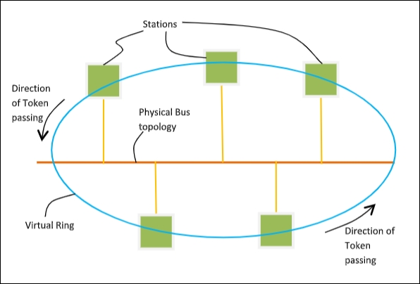 令牌总线(IEEE 802.4)是一种在局域网中通过虚拟环实现令牌环的标准。物理介质采用总线或树形拓扑结构,并使用同轴电缆。通过节点/站点创建虚拟环,令牌沿着此虚拟环按顺序从一个节点传递到下一个节点。每个节点都知道其前一个站点的地址和其后一个站点的地址。站点只有在拥有令牌时才能传输数据。令牌总线的运行原理类似于令牌环。