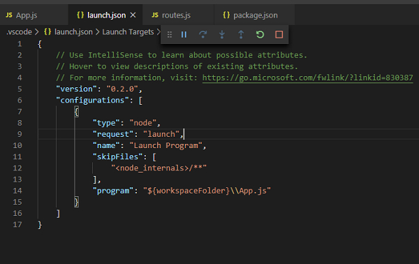 现在,我们可以保存更改并再次启动调试器。如果添加了任何代码更改,nodemon 将从 App.js 文件自动重启调试器。