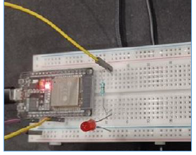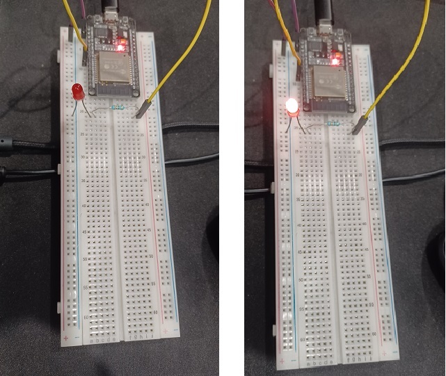该电路使用一个 LED 和 ESP32 制作。黄线连接到 D18 引脚。