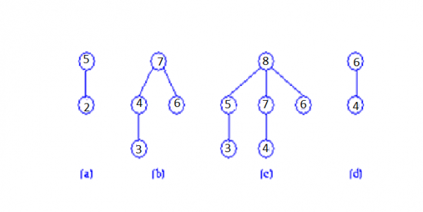 下面显示了四个最大成对堆。请注意,成对堆不需要是二叉树。