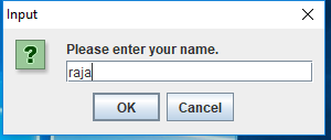 String name = JOptionPane.showInputDialog(null, "Please enter your name.");